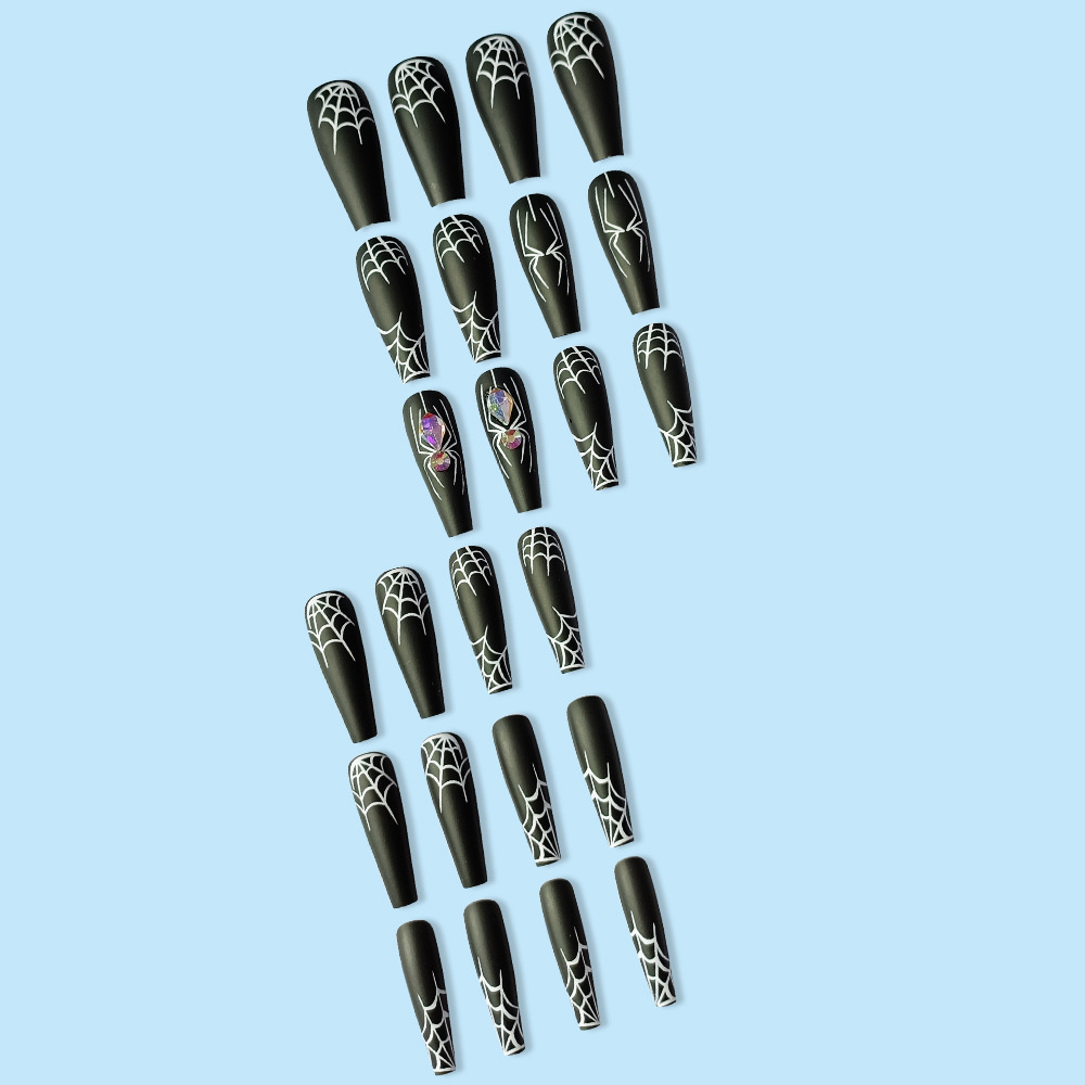 Long Almond Water Drop Fake Nail Patch Halloween Skull Wear Manicure