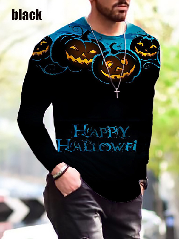 Halloween Autumn And Winter Men S Print Simple Long-Sleeved T Shirt