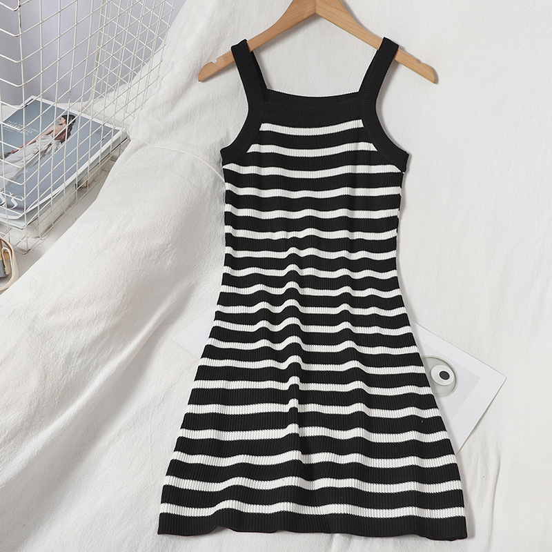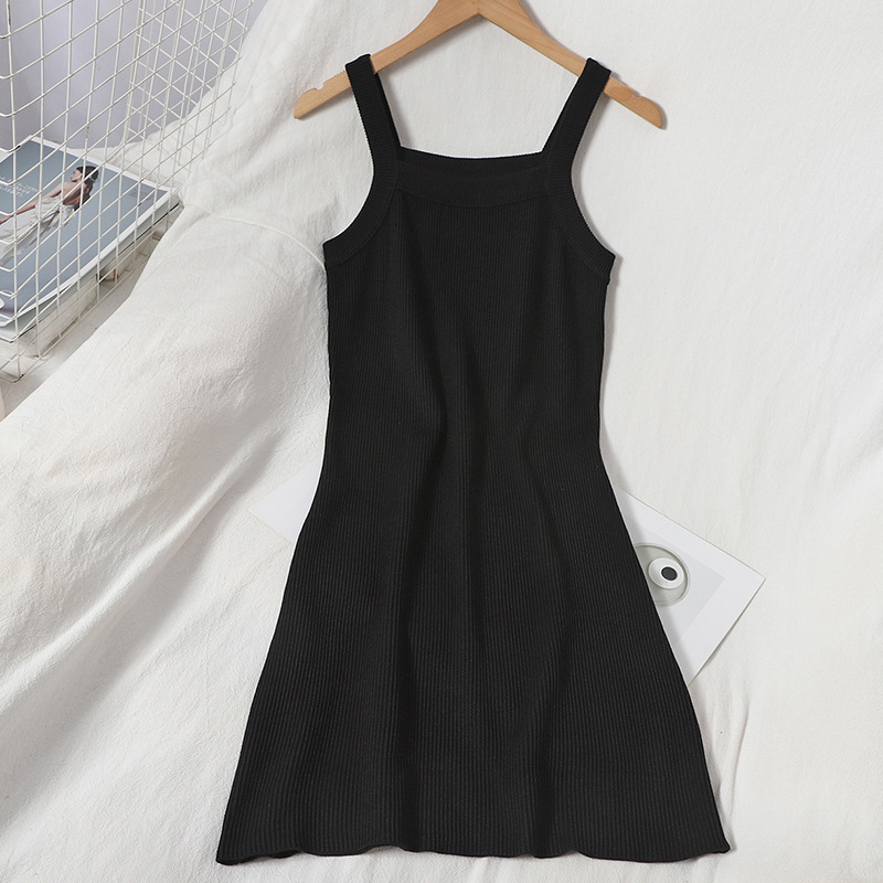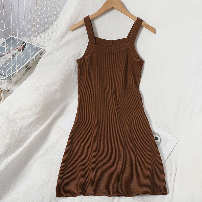 Women’s All-match Slim Ribbed Hip Knitted Suspender Dress